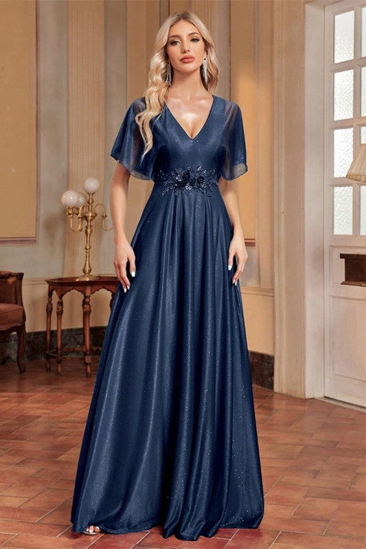 Regular price $660.00 USDRegular priceSale price $660.00 USDShort Sleeve V-Neck Beaded Ballgown