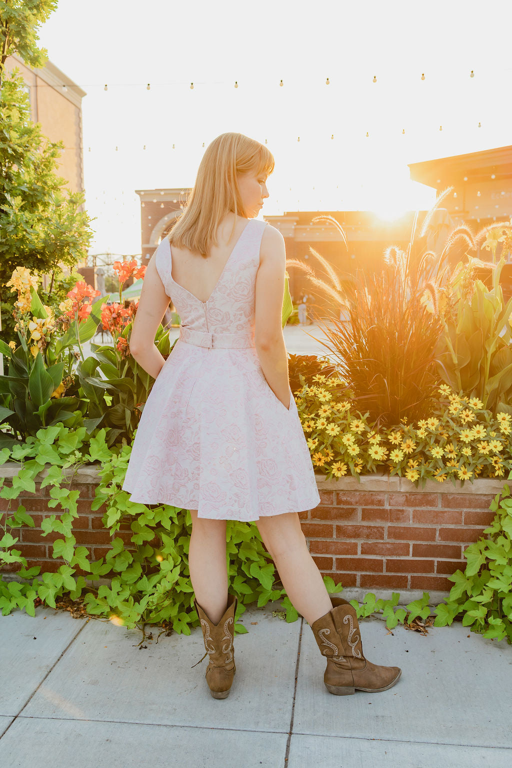 This playful jacquard a-line dress features fun deep pockets for a touch of charm and practicality.