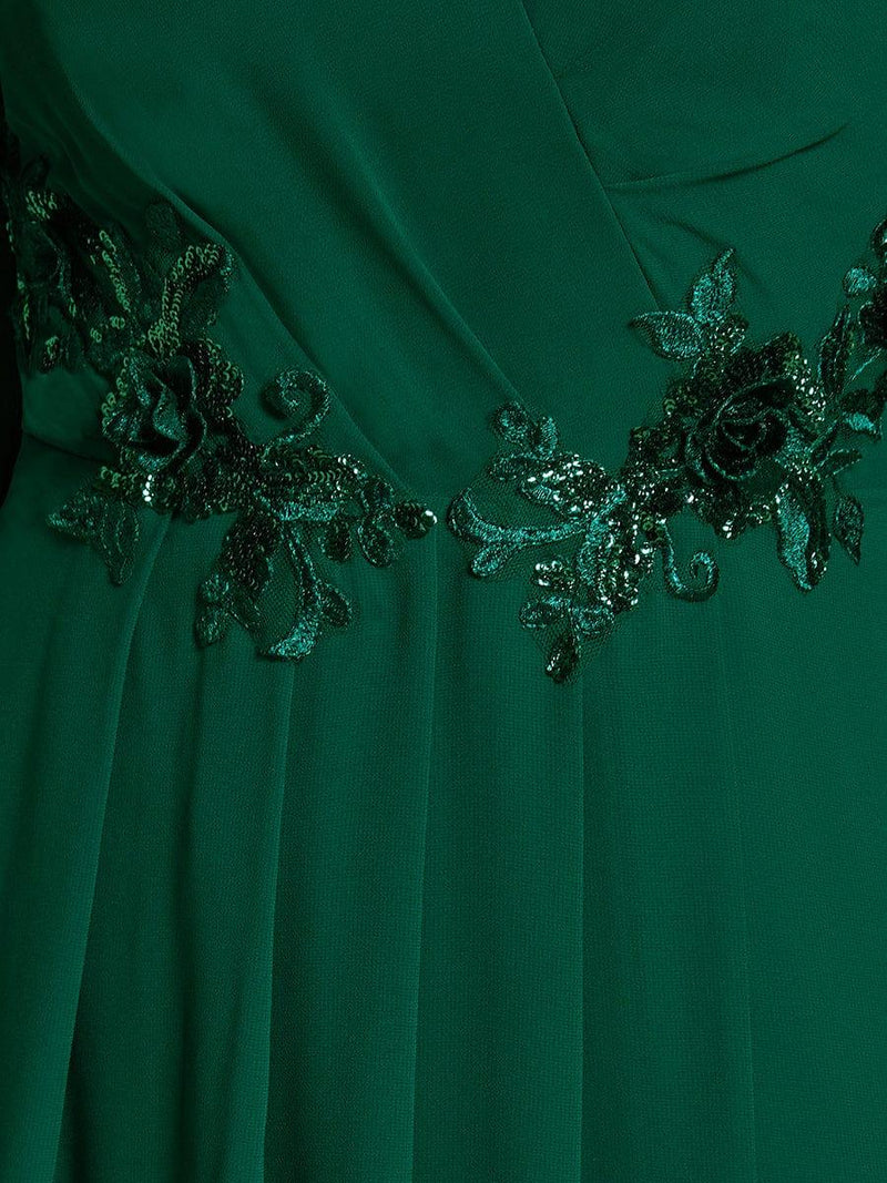 Make an elegant entrance with our Long Sleeves Waist Applique A-Line Midi Chiffon Wedding Guest Dress. This sophisticated dress features an A-line silhouette with a delicate waist applique, adding a touch of charm. The long sleeves provide a graceful look, while the lightweight chiffon fabric ensures comfort throughout the event. Perfect for weddings or formal gatherings, this dress combines style and sophistication effortlessly.