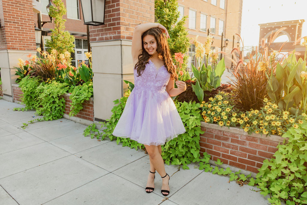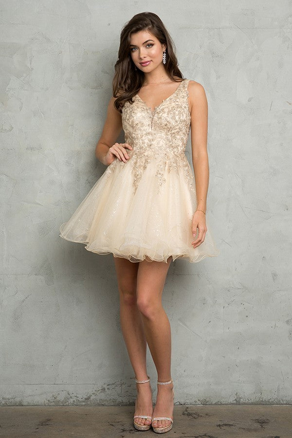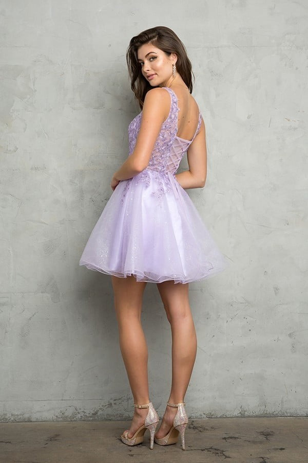 Front of bodice is fully lined but back bodice is sheer with corset detail.