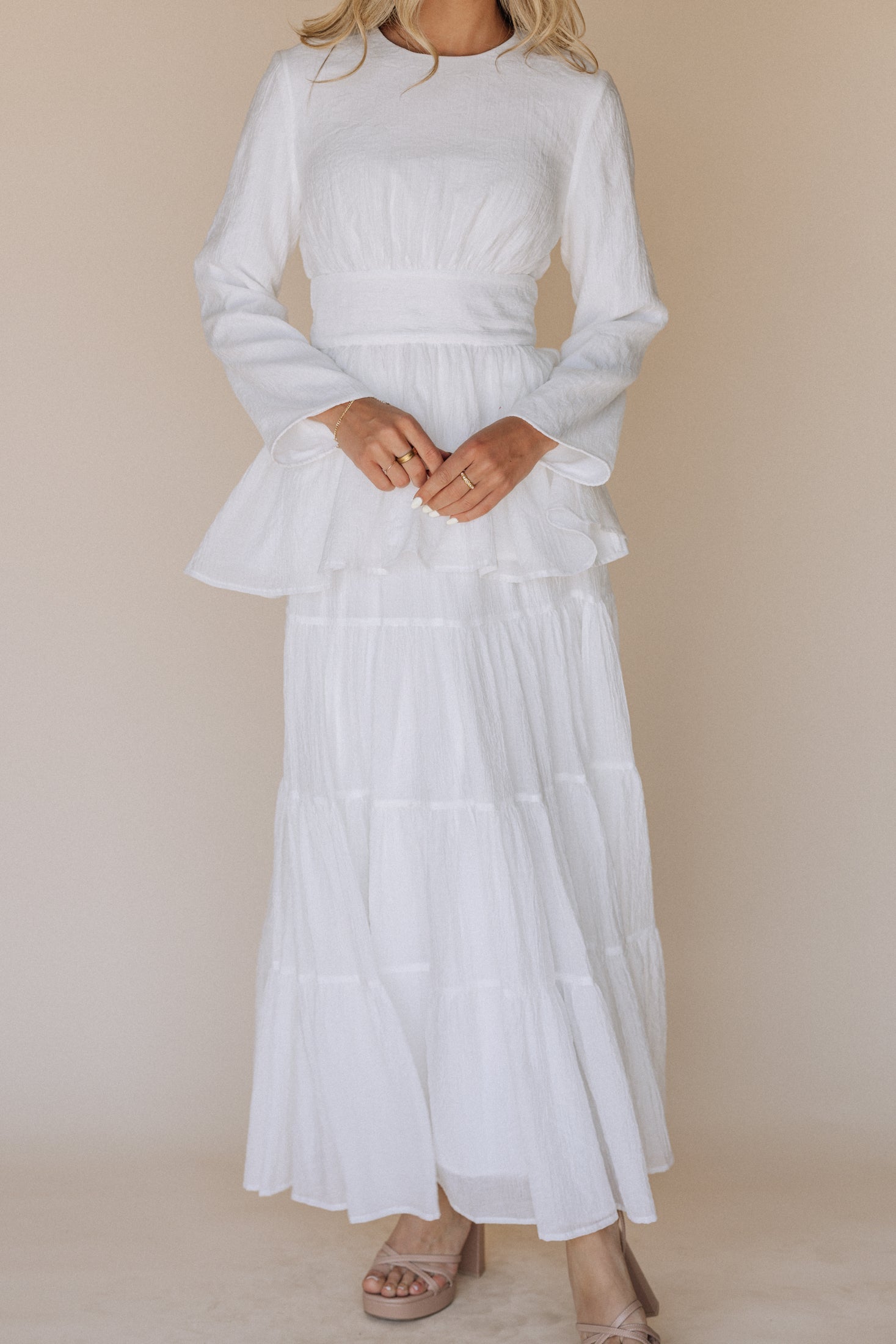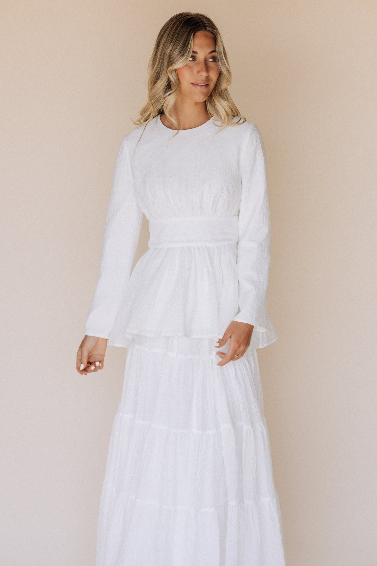 Look at this adorable LDS Temple Set, featuring a modest long sleeve top with a maxi skirt. Crafted with high-quality materials, this dress is both comfortable and elegant, perfect for you temple visit. Hip pockets included.