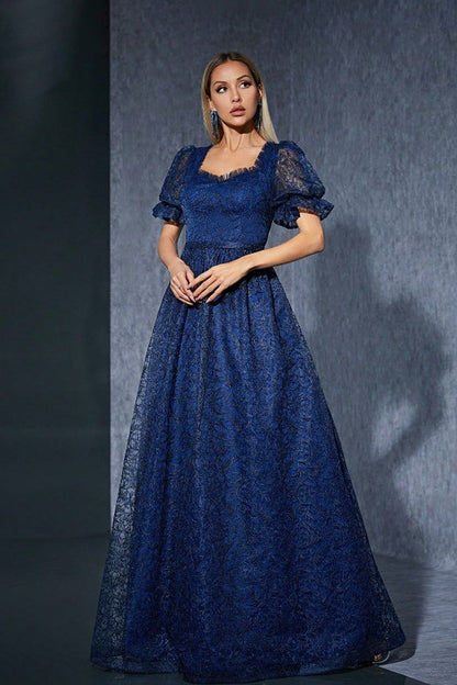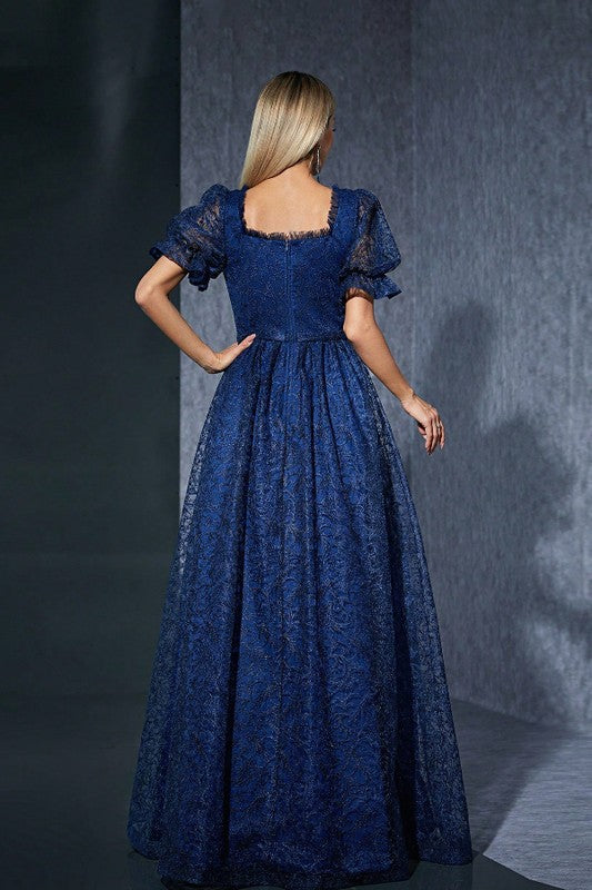 puff sleeve A-line dress, sweetheart neckline