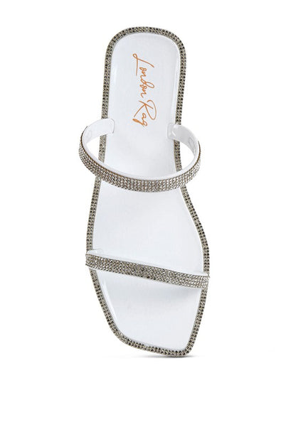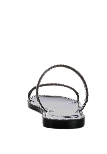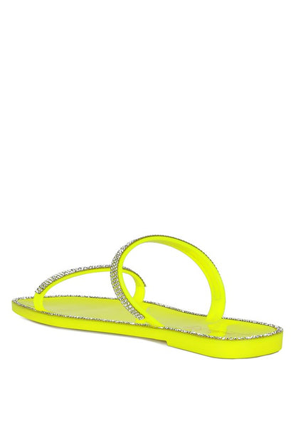 Water-resistant soft jelly flats with beautiful sparkling diamante detail studs along with the straps and edges. The casual, comfy streetwear flats look gorgeous on the feet.