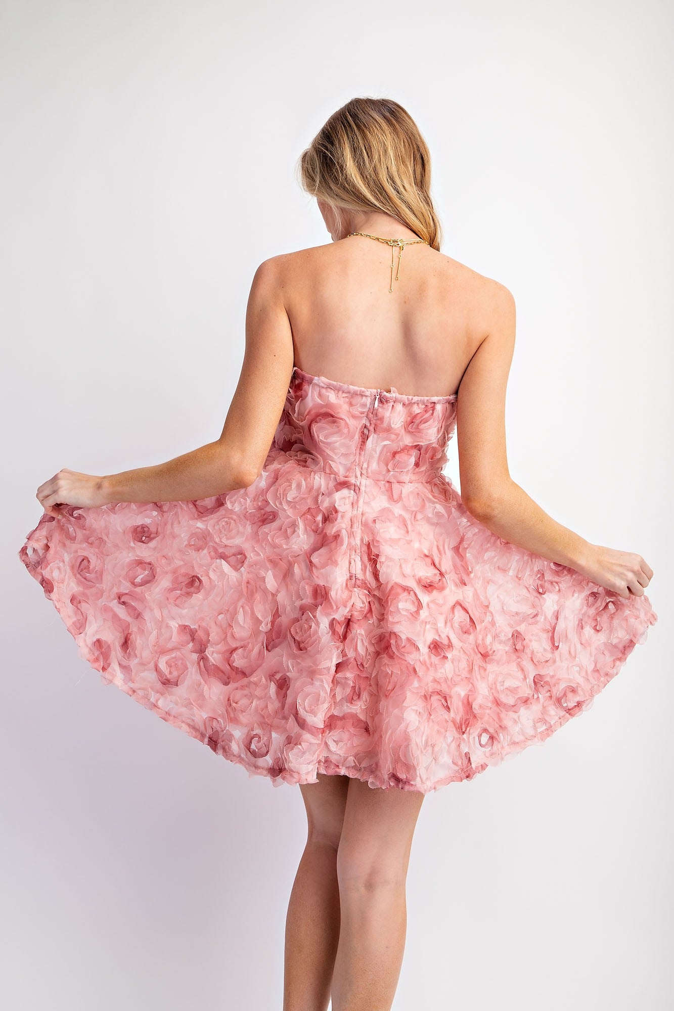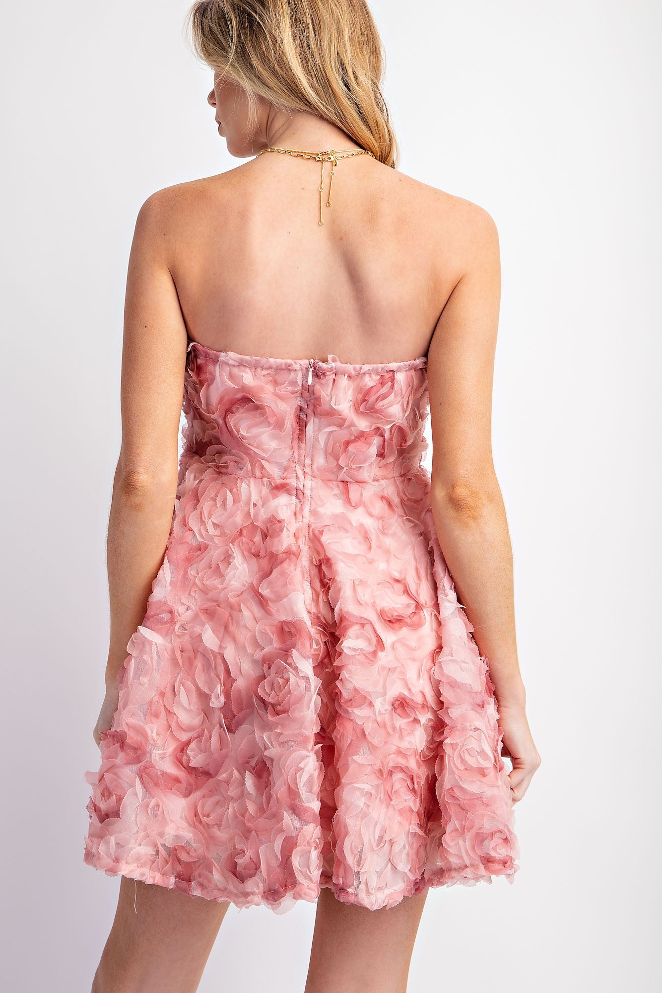 Swoon-worthy pink dress featuring dimensional floral appliqués that steal the show. The flattering fit-and-flare silhouette hugs where it counts, while the center-back zipper and elastic waistband keep everything comfortable and secure. Fully lined for a polished finish that feels as good as it looks.