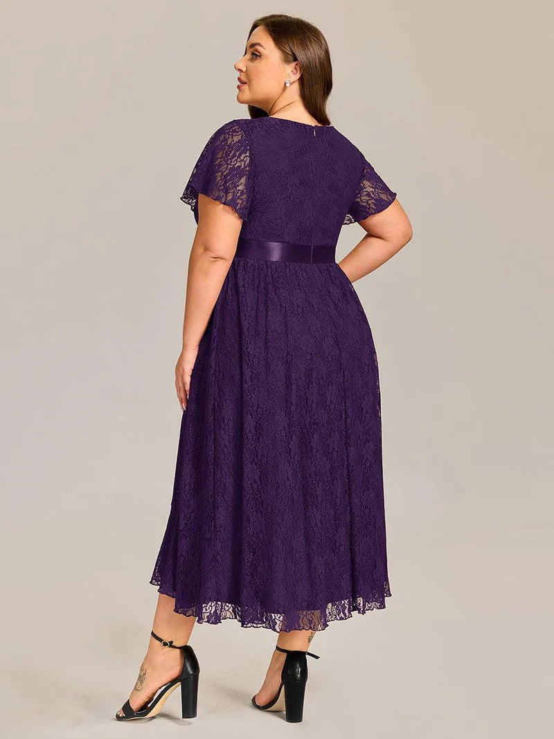 Elevate your evening look with this stunning modest Short Sleeve Ruffled Empire Waist Asymmetrical Midi Formal Evening Dress! Designed to flatter, the empire waist creates a beautiful silhouette while the ruffled short sleeves add a touch of playful elegance. The asymmetrical hemline brings a modern twist, making it perfect for any formal occasion, from weddings to galas. Crafted from luxurious fabric, this dress drapes effortlessly, ensuring you feel as good as you look.