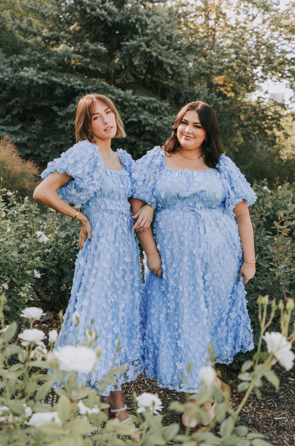 Delight in delicate floral appliques adorning soft lace, paired with charming puff sleeves. The playful tie at the waist lets you customize your fit, while elastic at the neckline and waist adds comfort. Fully lined for confidence, this dress features a side zipper that makes nursing a breeze. With its modest midi to maxi length, Shannon combines sweet style and practical flair.